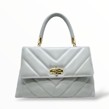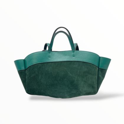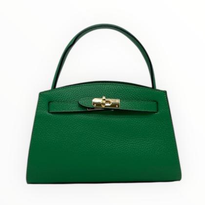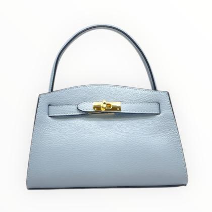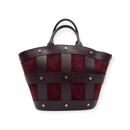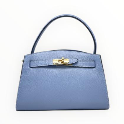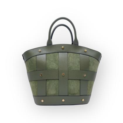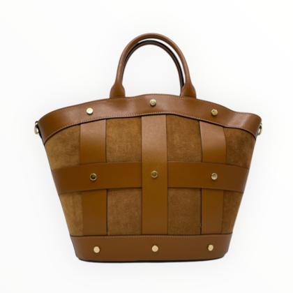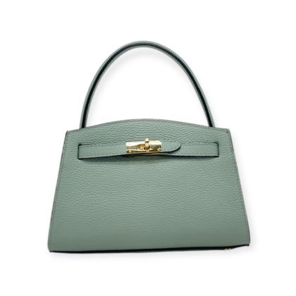 Crocodile print leather bag with bamboo handle and shoulder strap