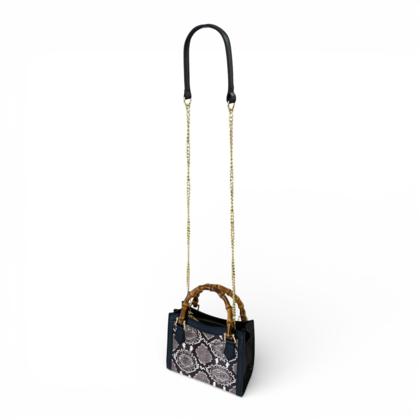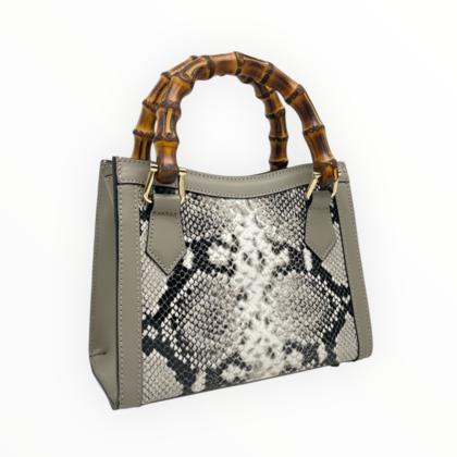 Mini-Tasche mit Krokodilmuster und Bambusgriff