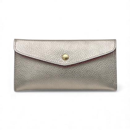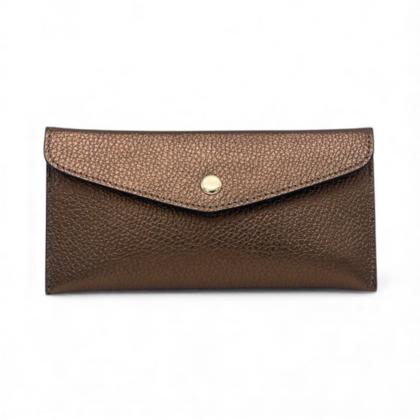 Magnífico mini monedero / monedero en cuero Made in Italy con cierre de clic clac, hecho de cuero martillado. Accesorios en color dorado antiguo.