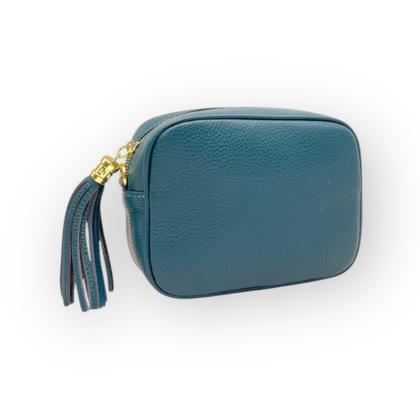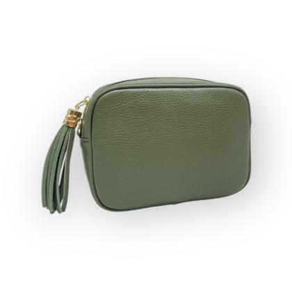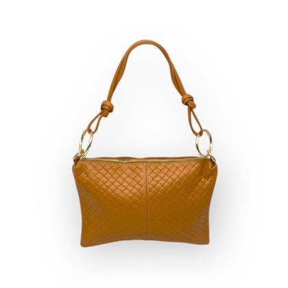 Bolso de piel con estampado de cocodrilo, asa de bambú y bandolera