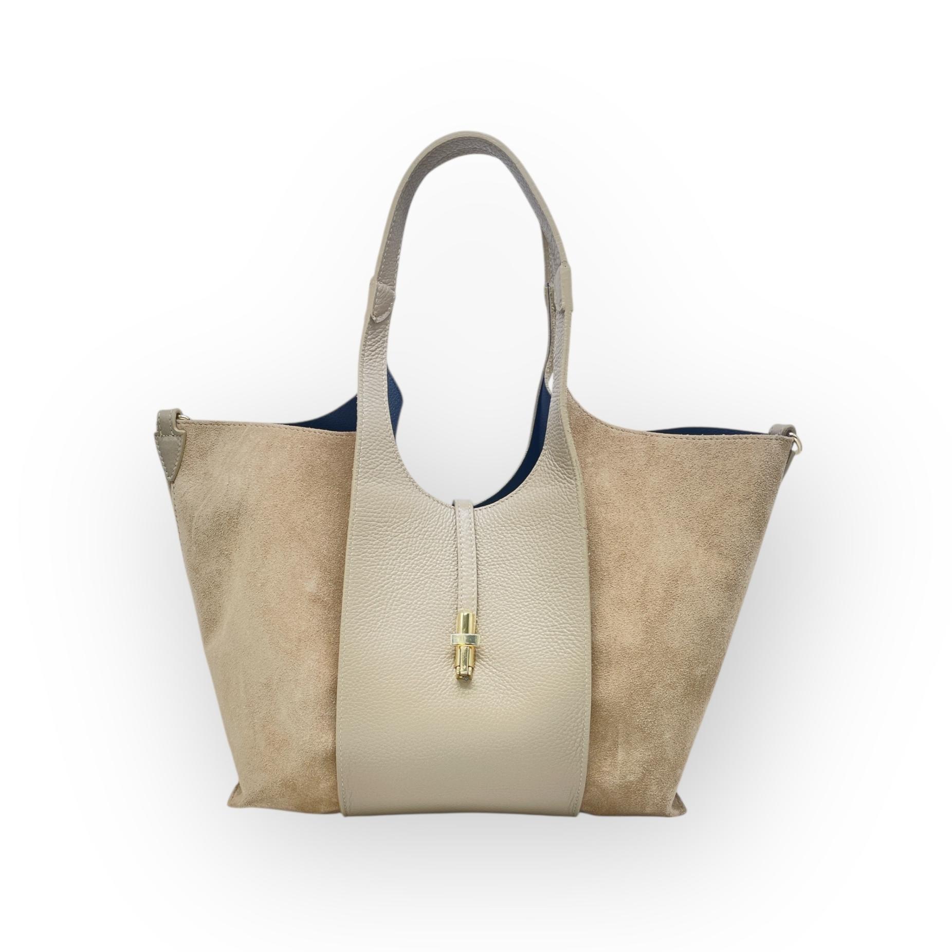 Suede bag with synthetic handle