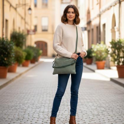 Suede bag with a practical removable leather pouch inside