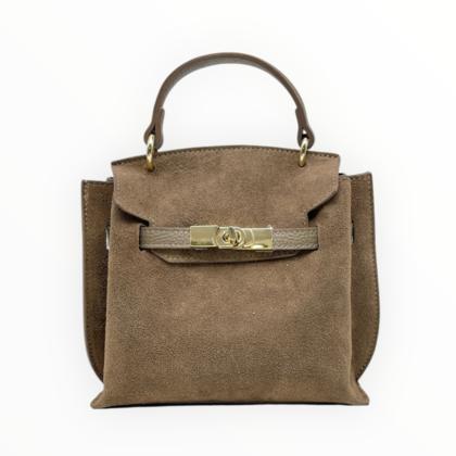 Suede bag with a practical removable leather pouch inside