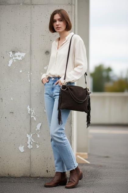 Borsa con tracolla in pelle scamosciata