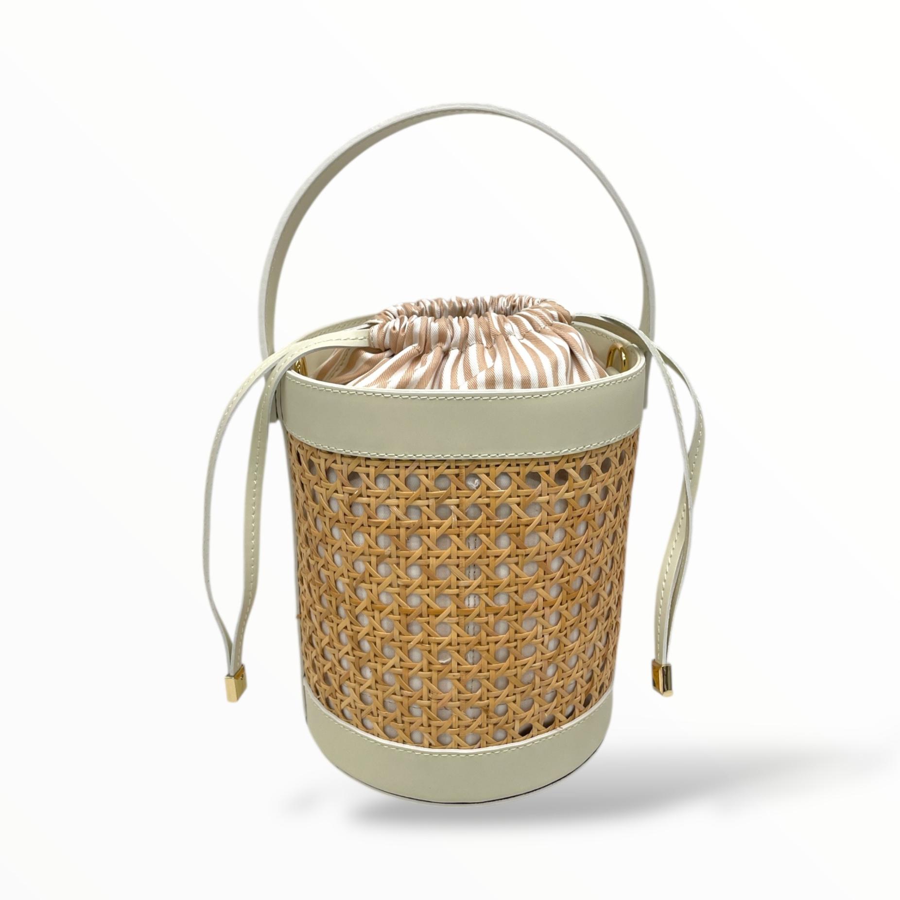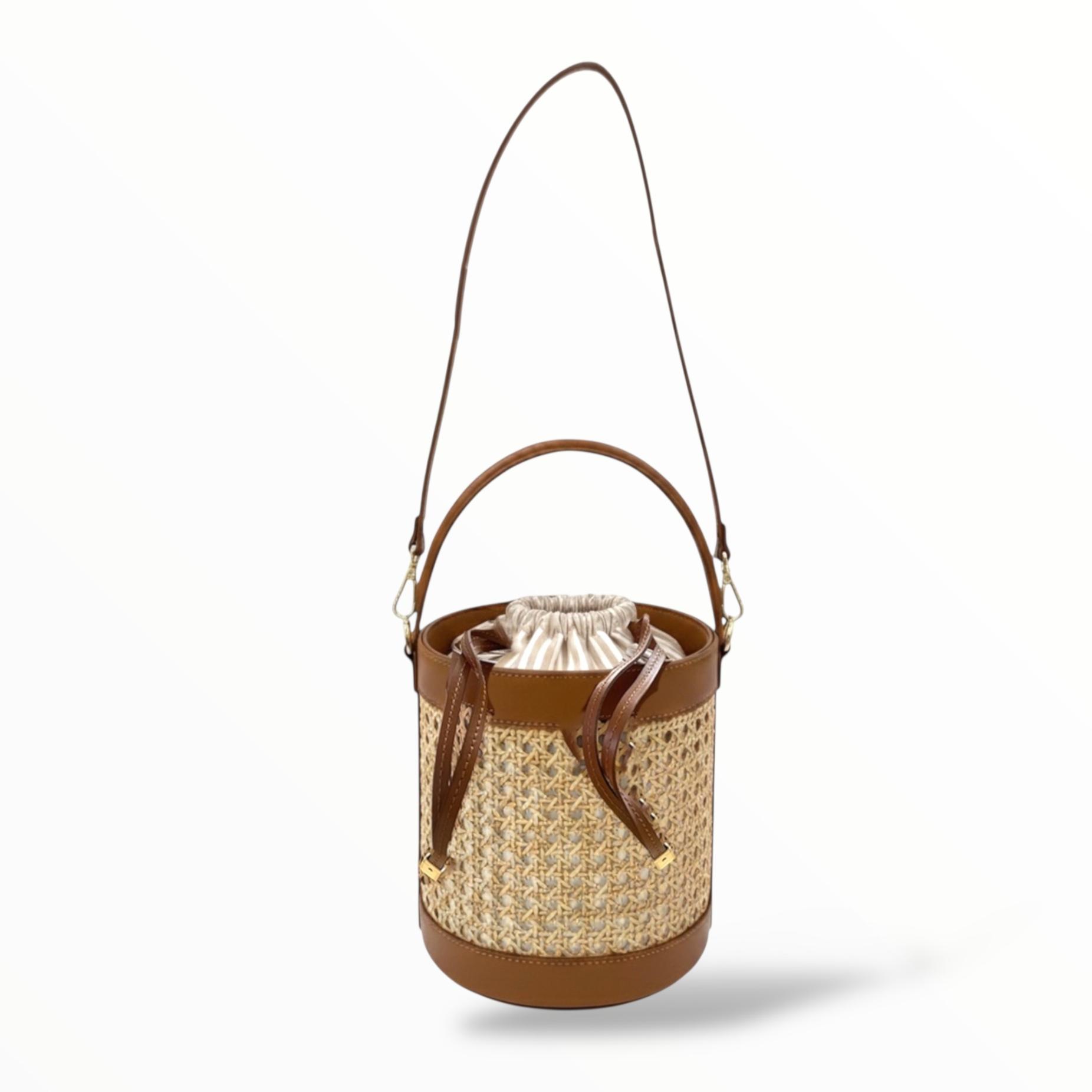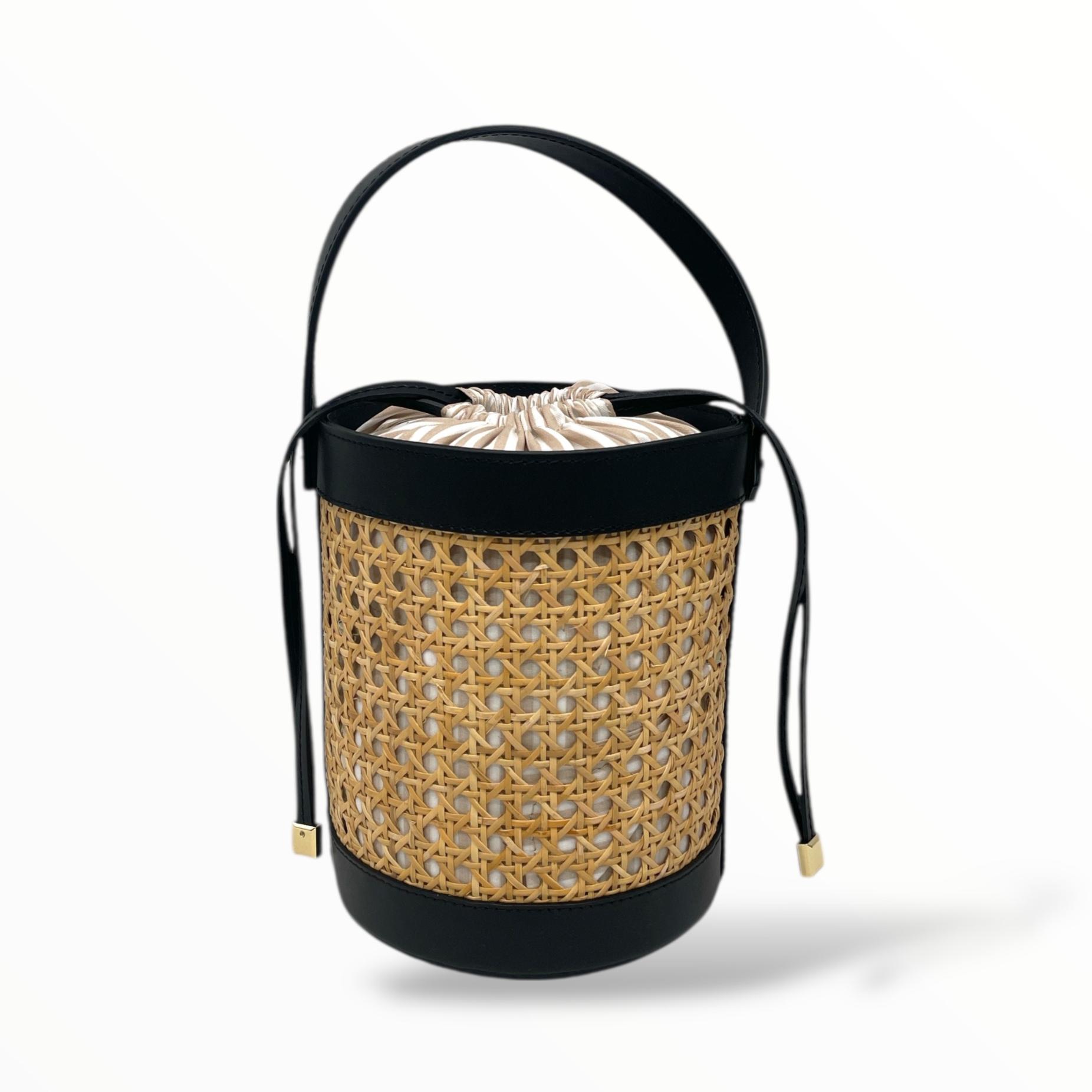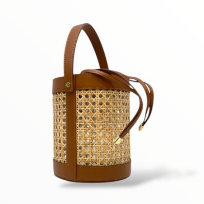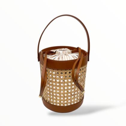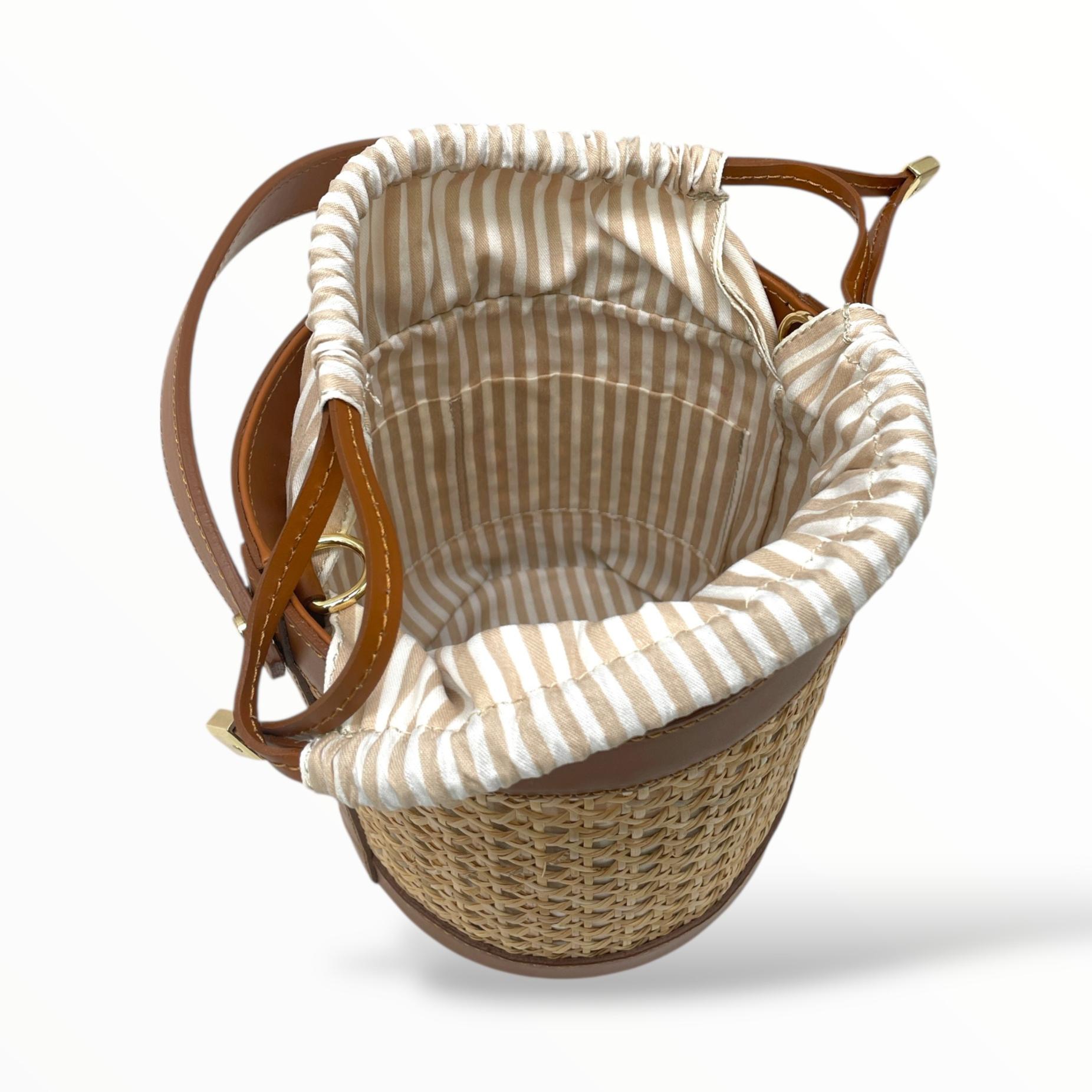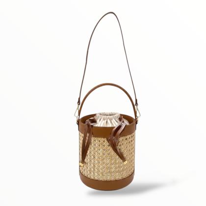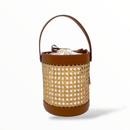 Bucket Bag in Leather and Vienna Straw