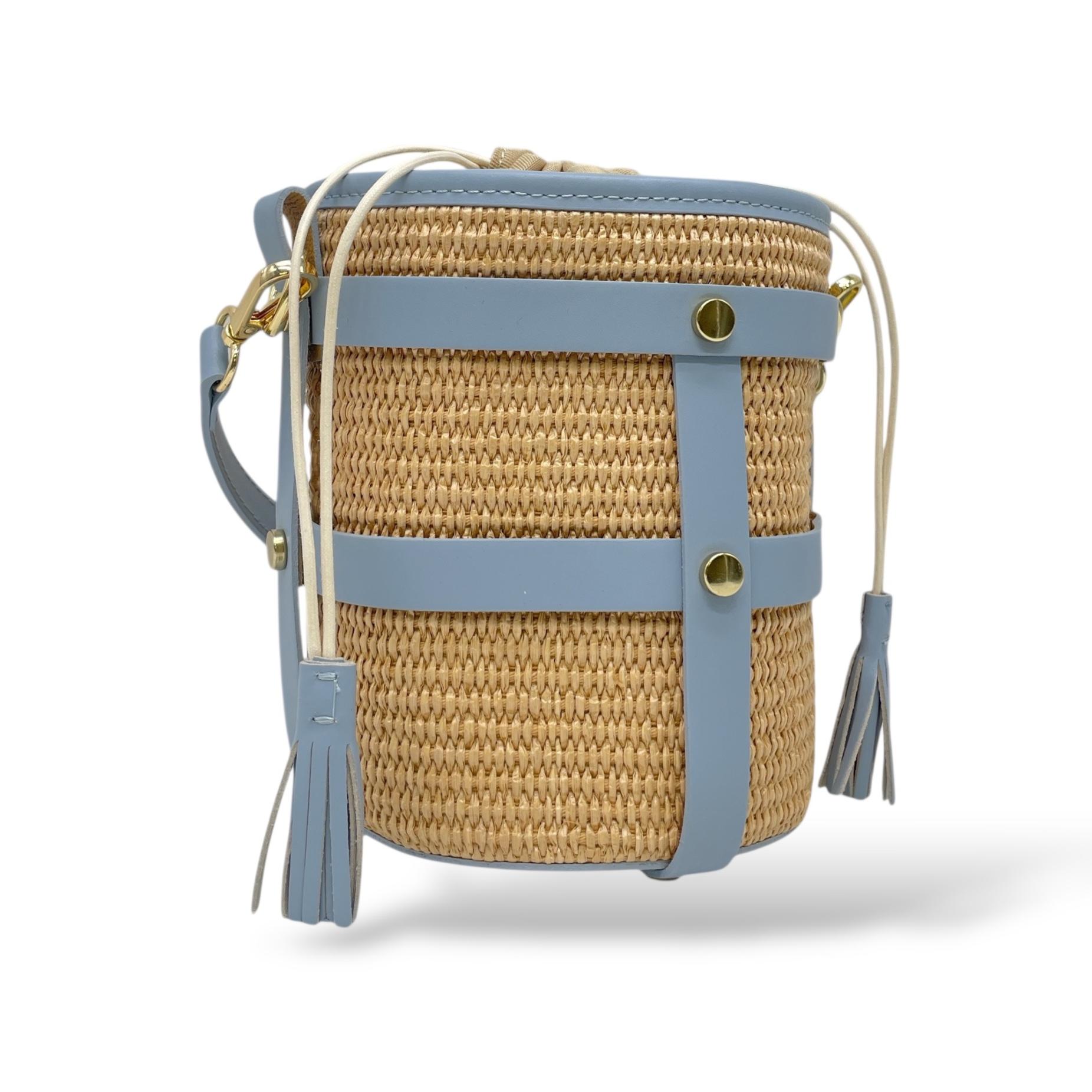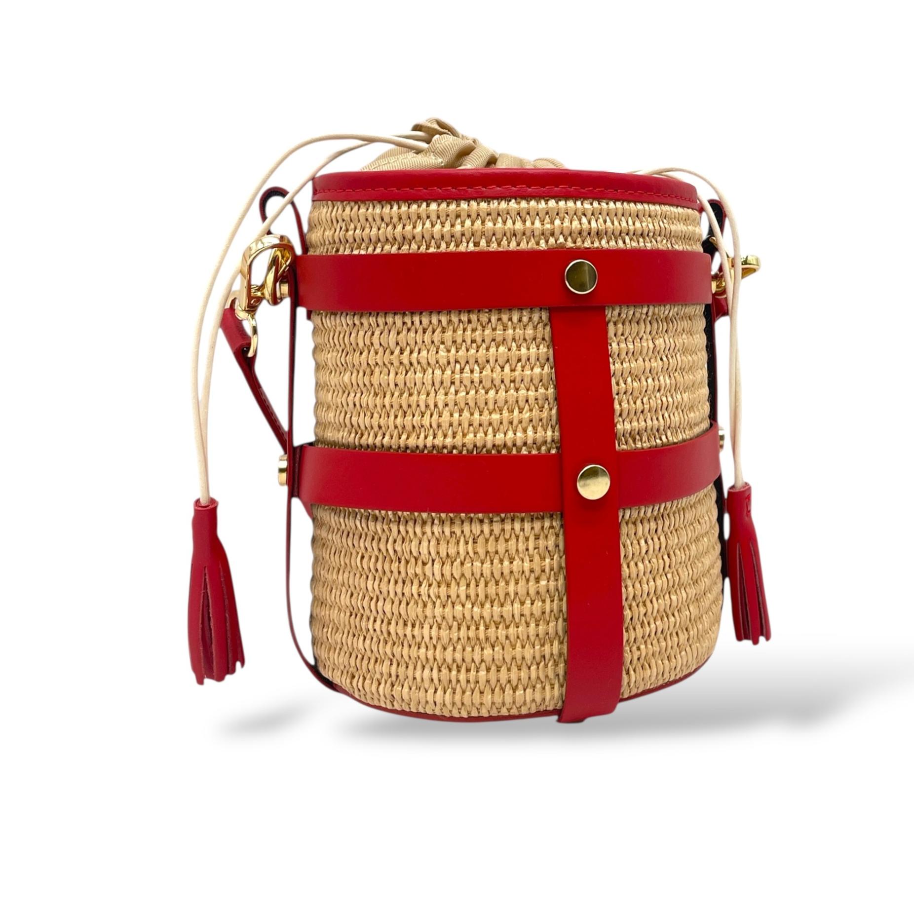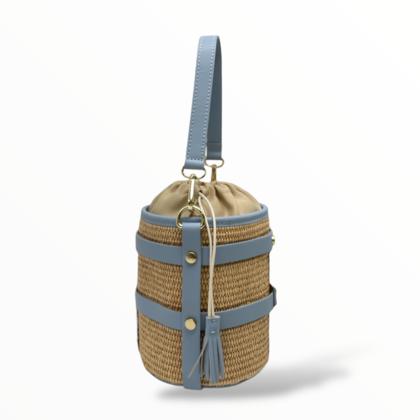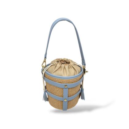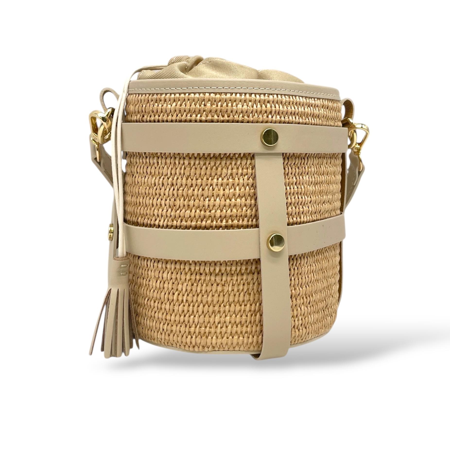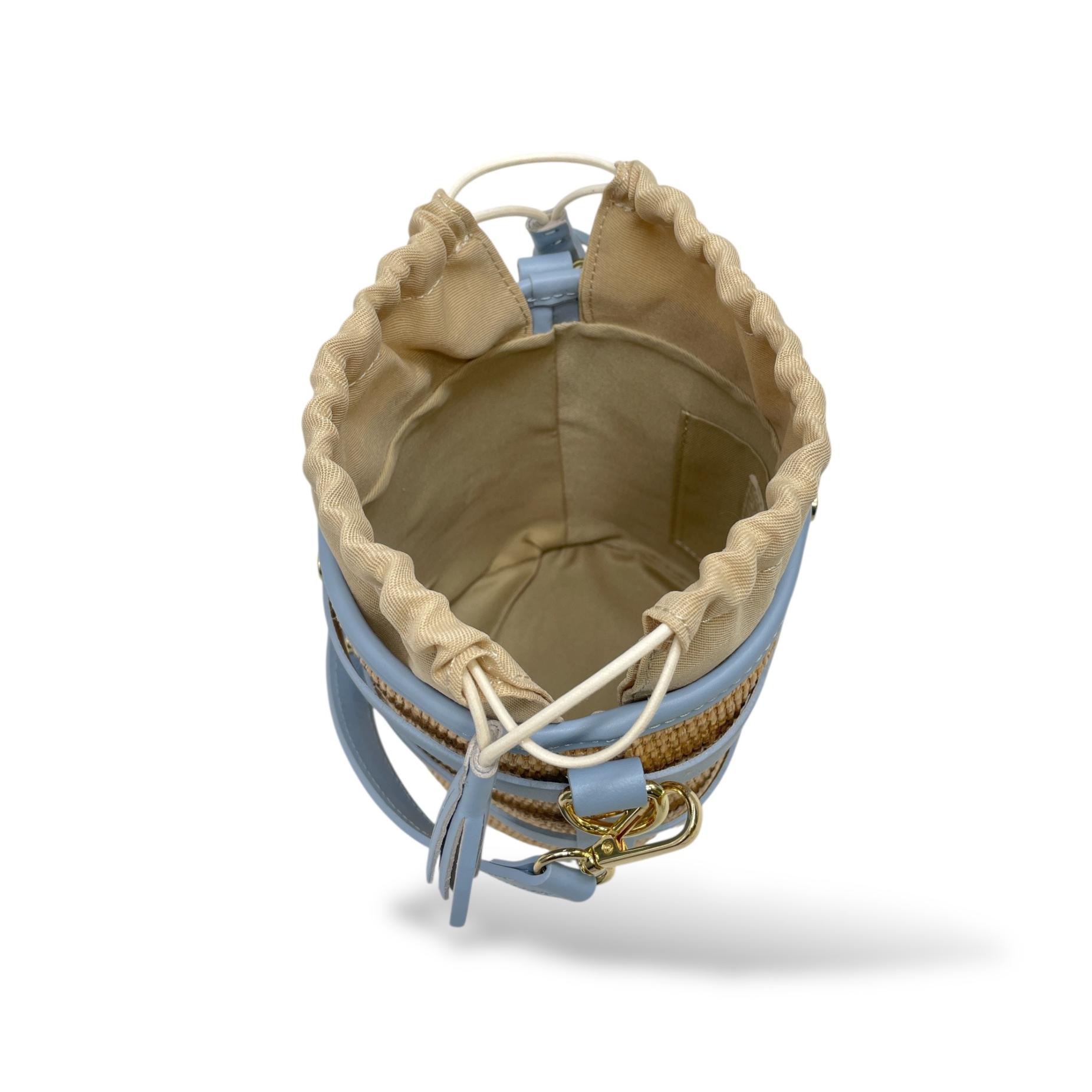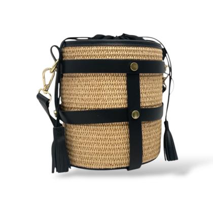 Small Bucket Bag in Leather and Raffia