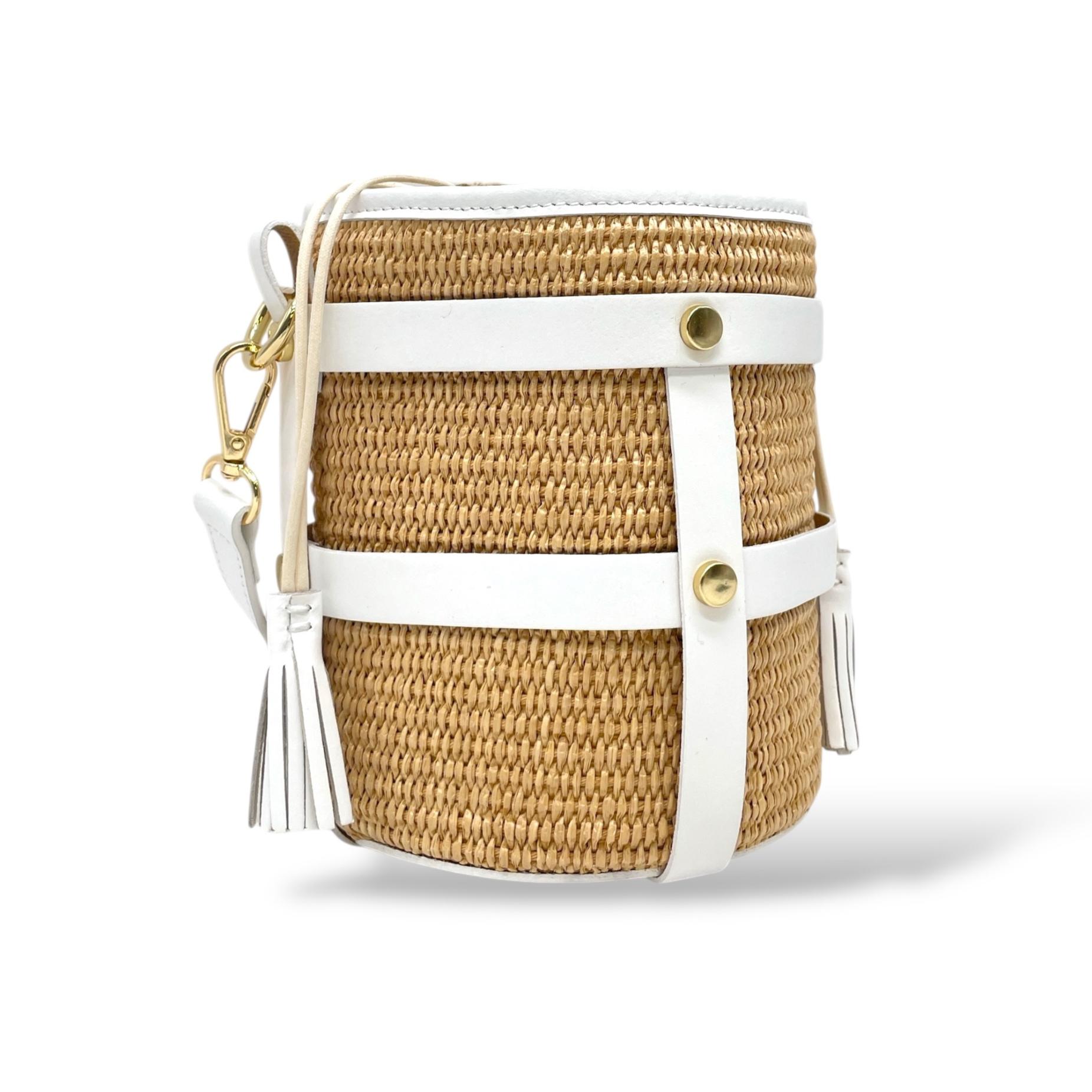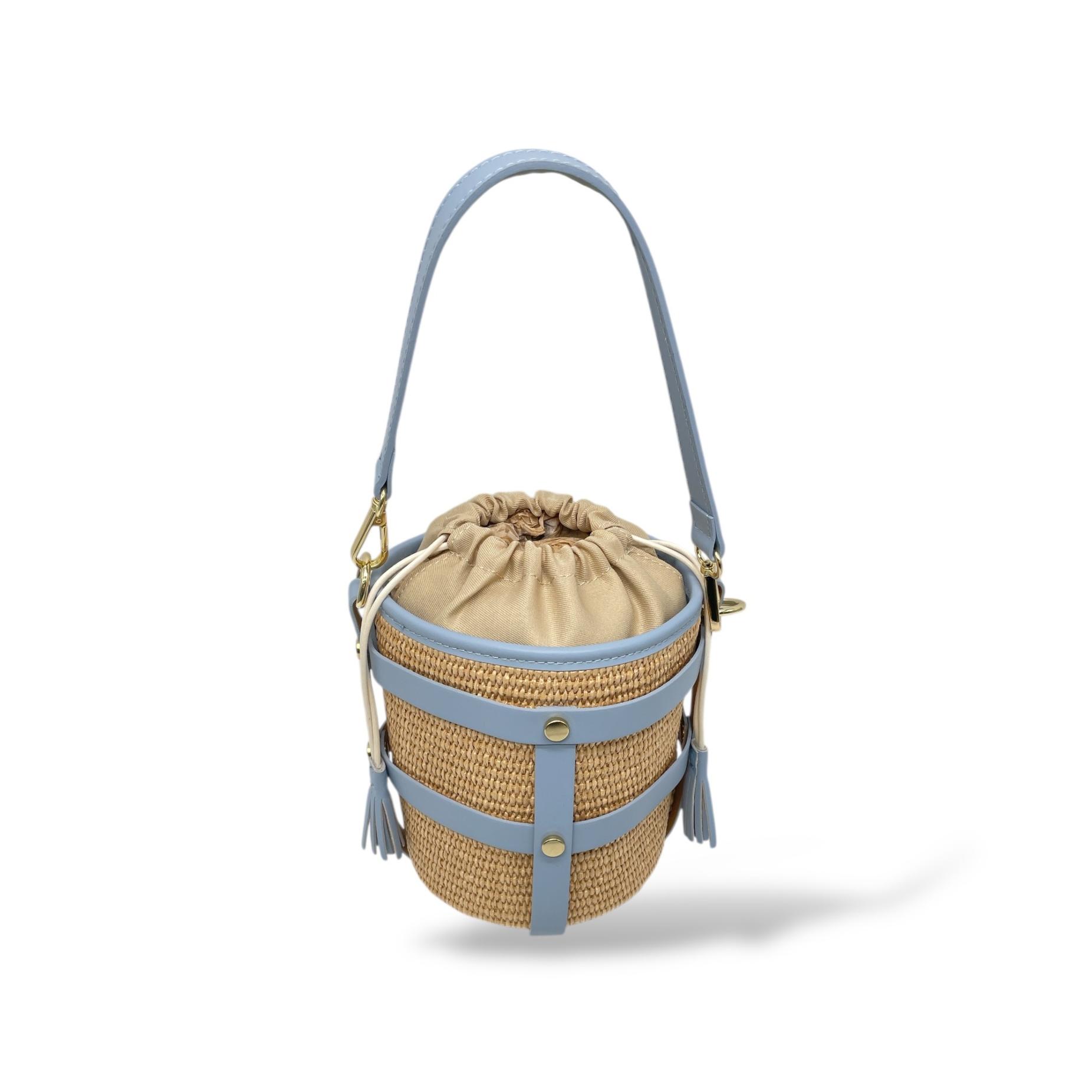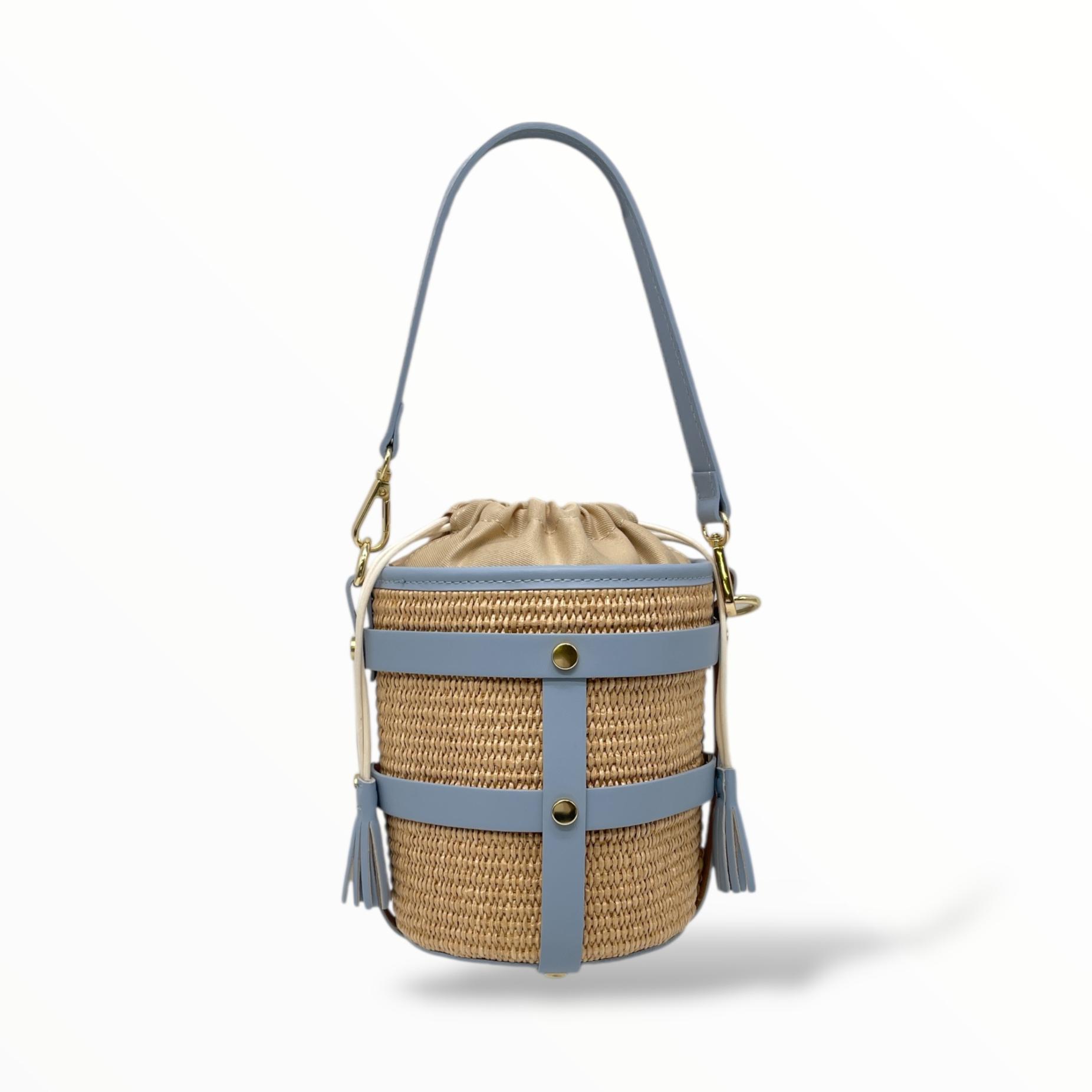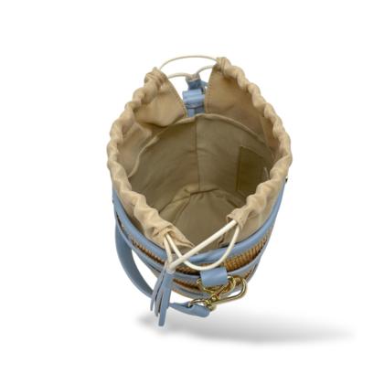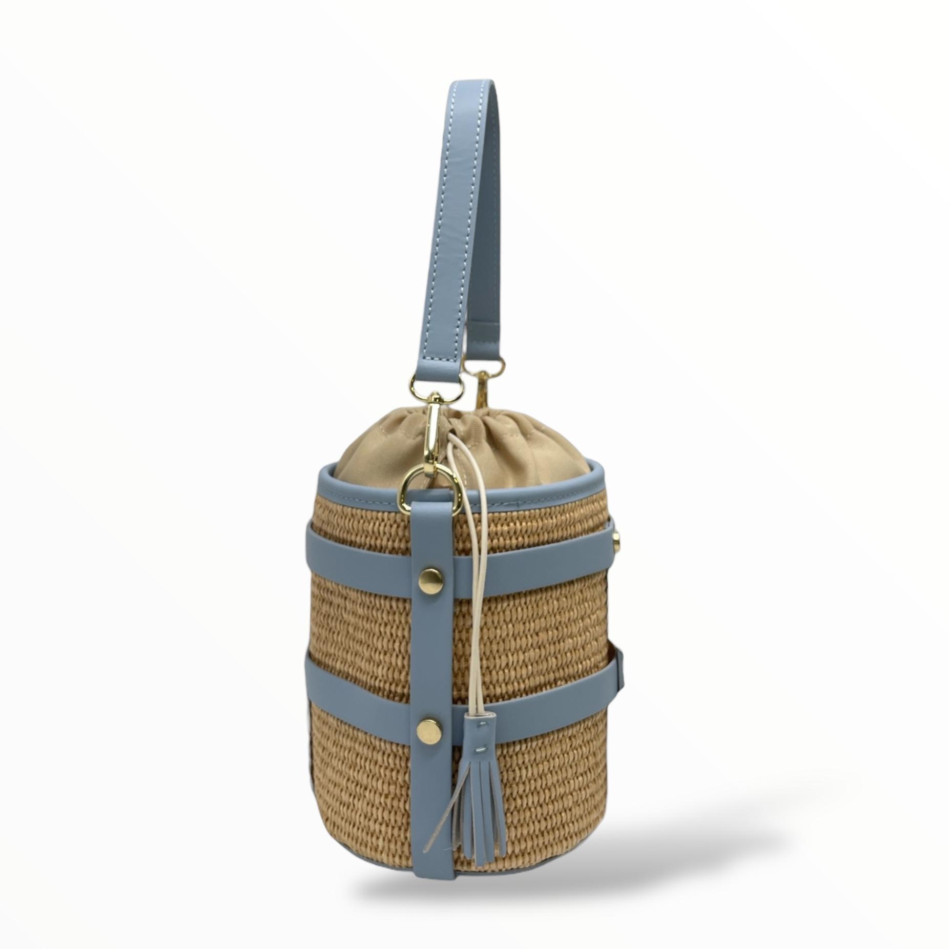 Small Bucket Bag in Leather and Raffia