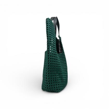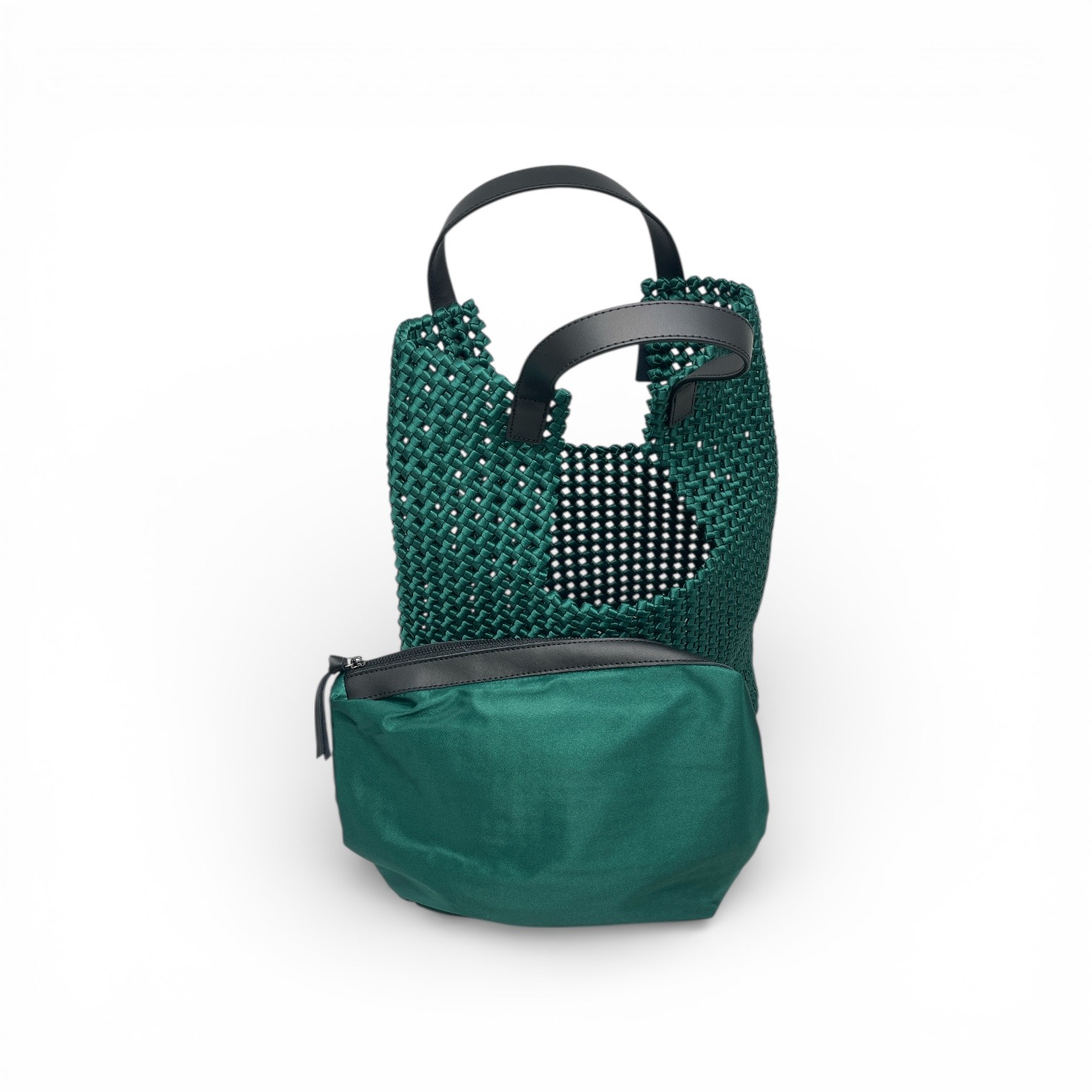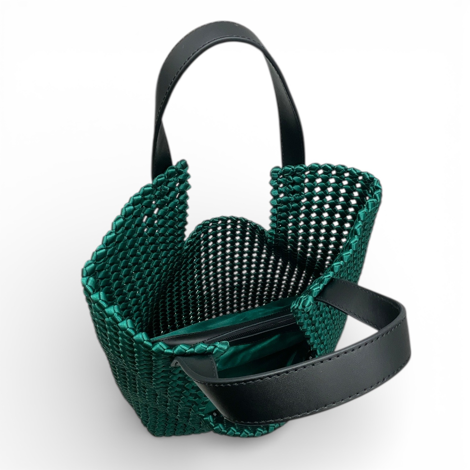 Satin bag with leather handle
