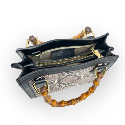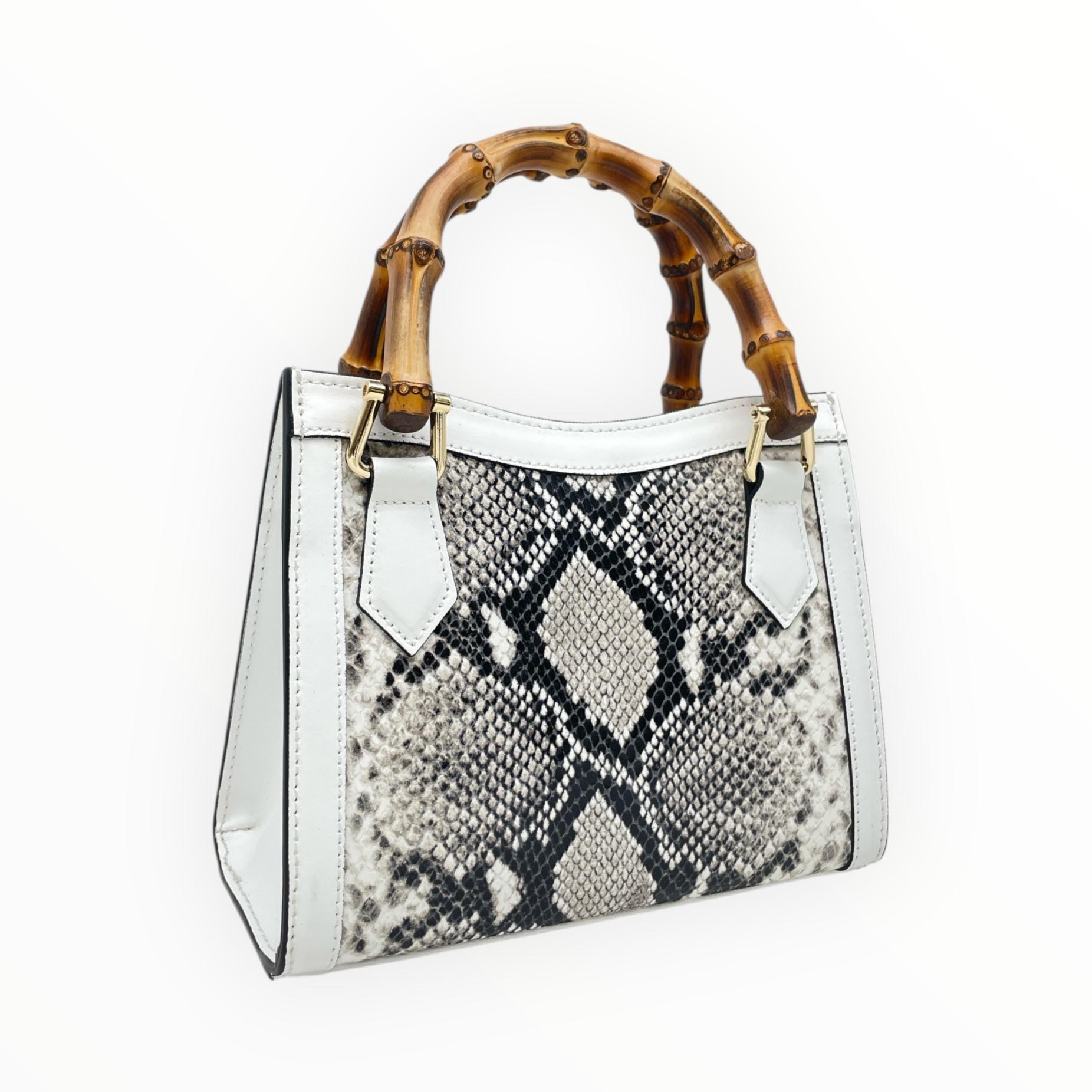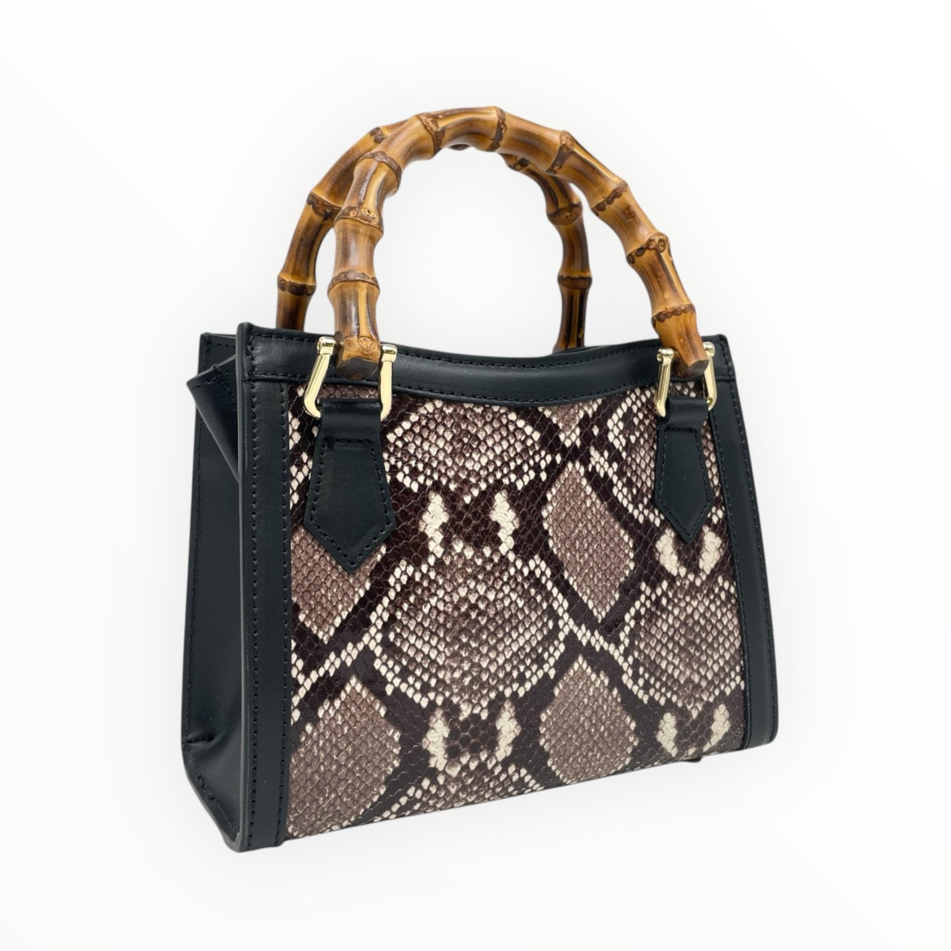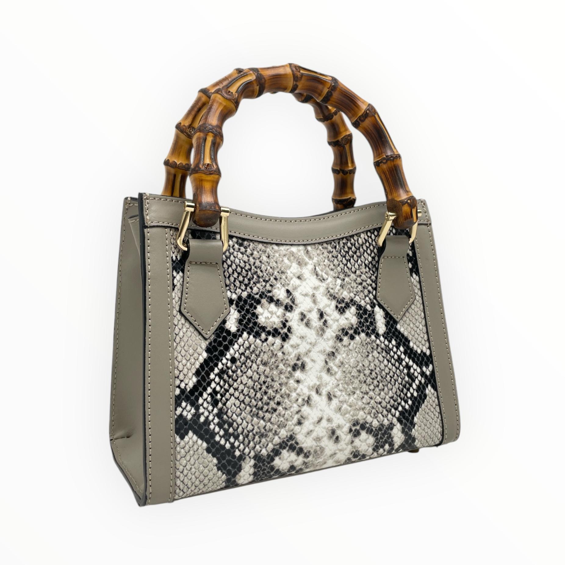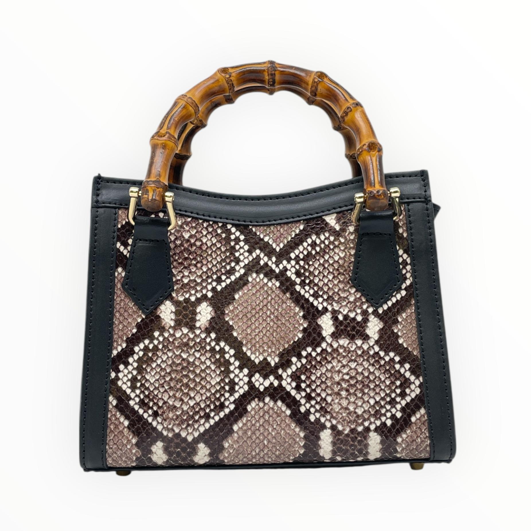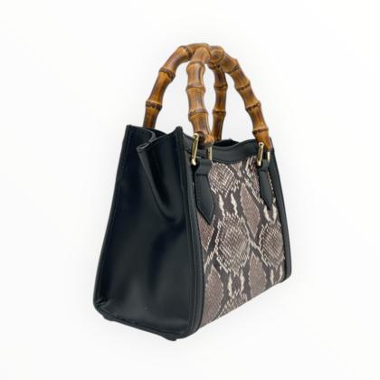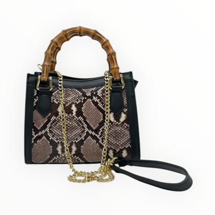 Crocodile print mini bag with bamboo handle