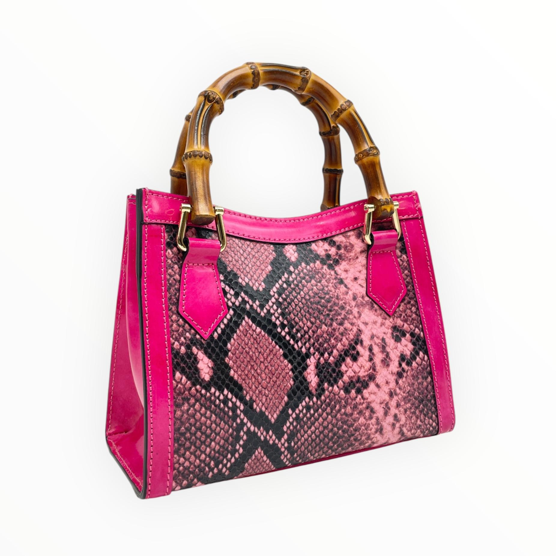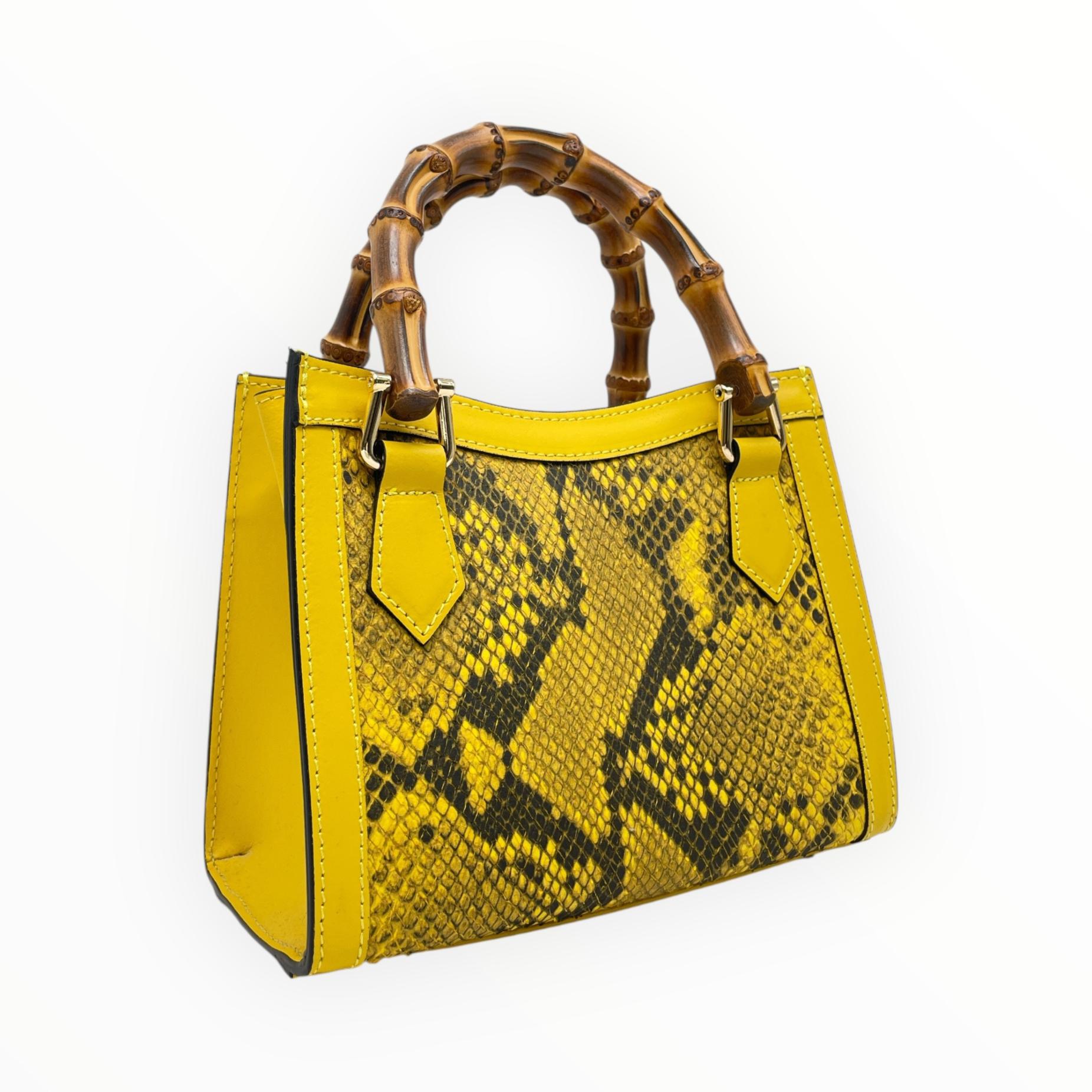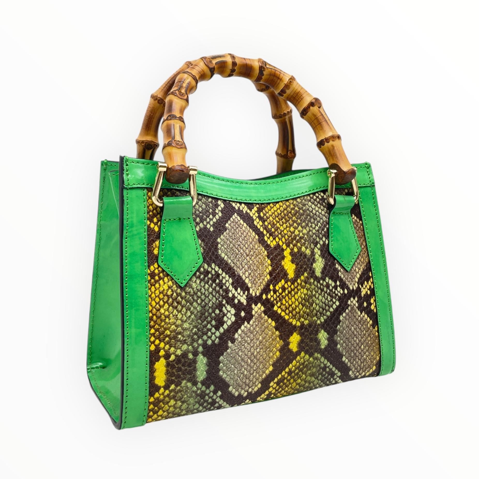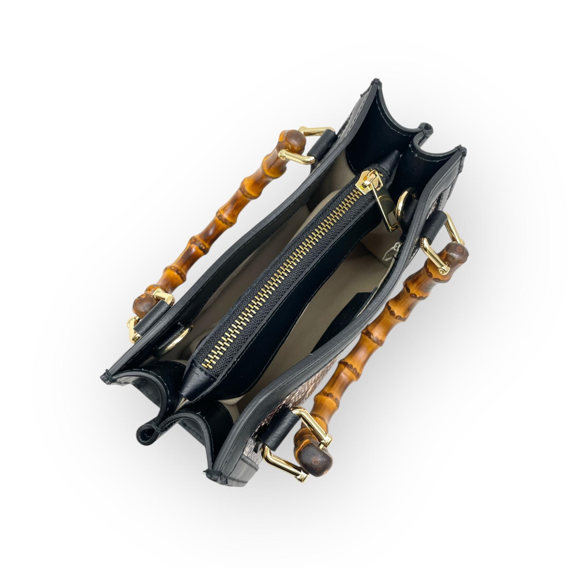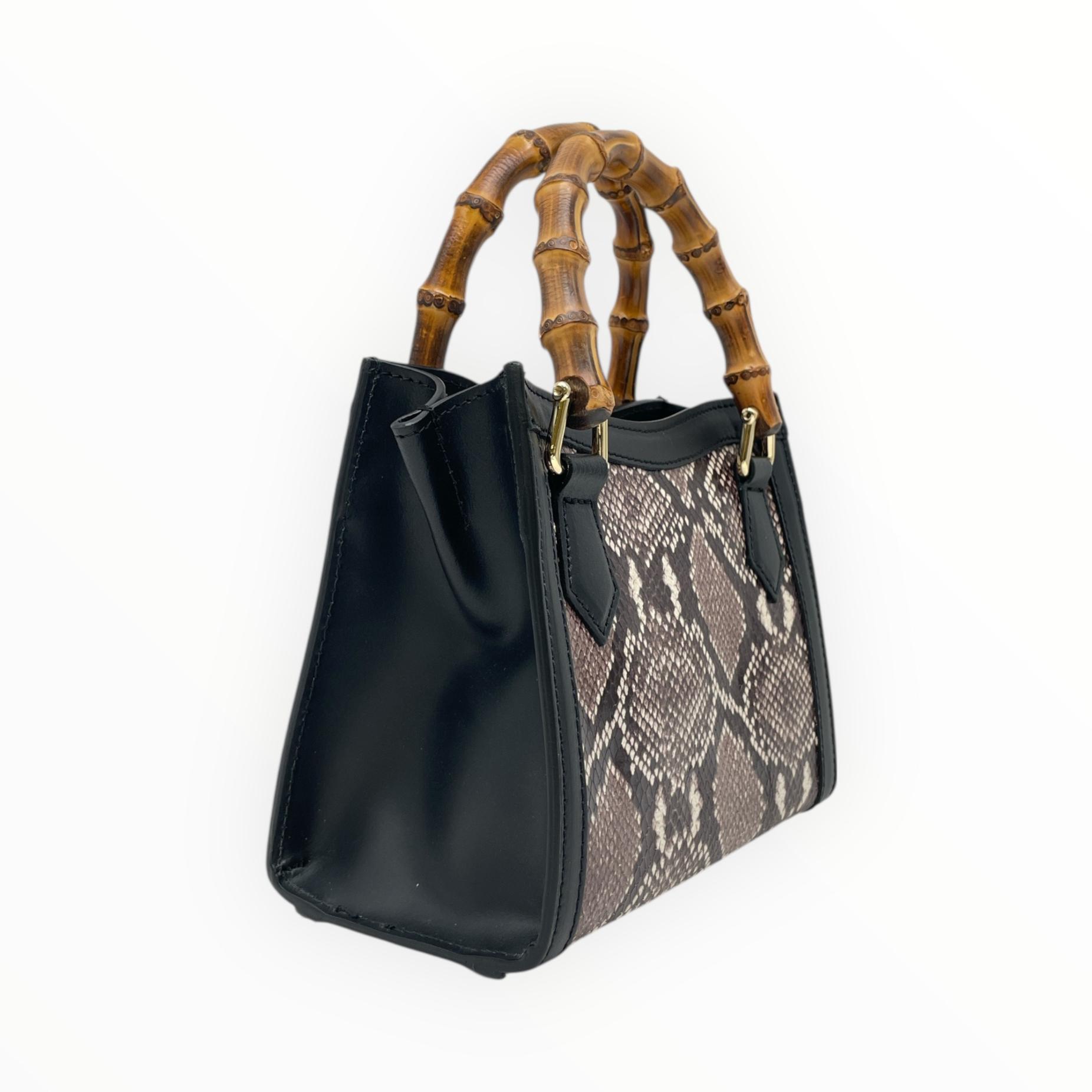 Crocodile print mini bag with bamboo handle