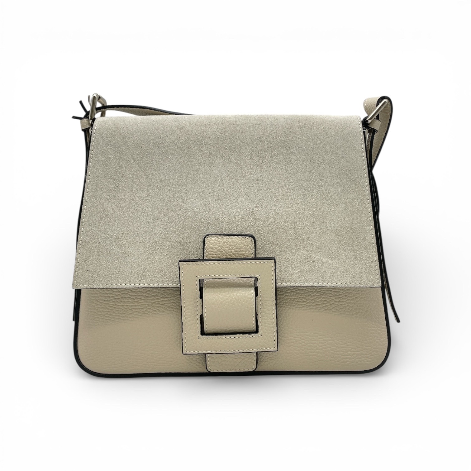 Leather bag with suede parts